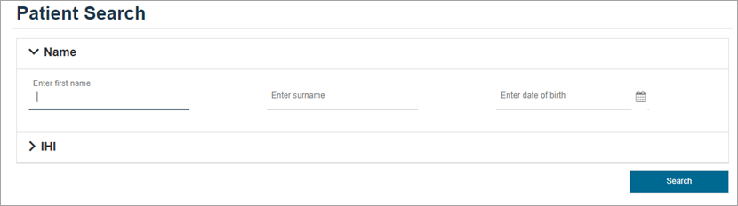 3. Alternatively, expand the IHI section and enter the patient's Individual Healthcare Identifier (IHI).