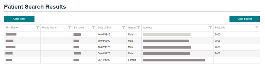 1. In Patient Search Results, select a patient to open the relevant record and view Patient Details.